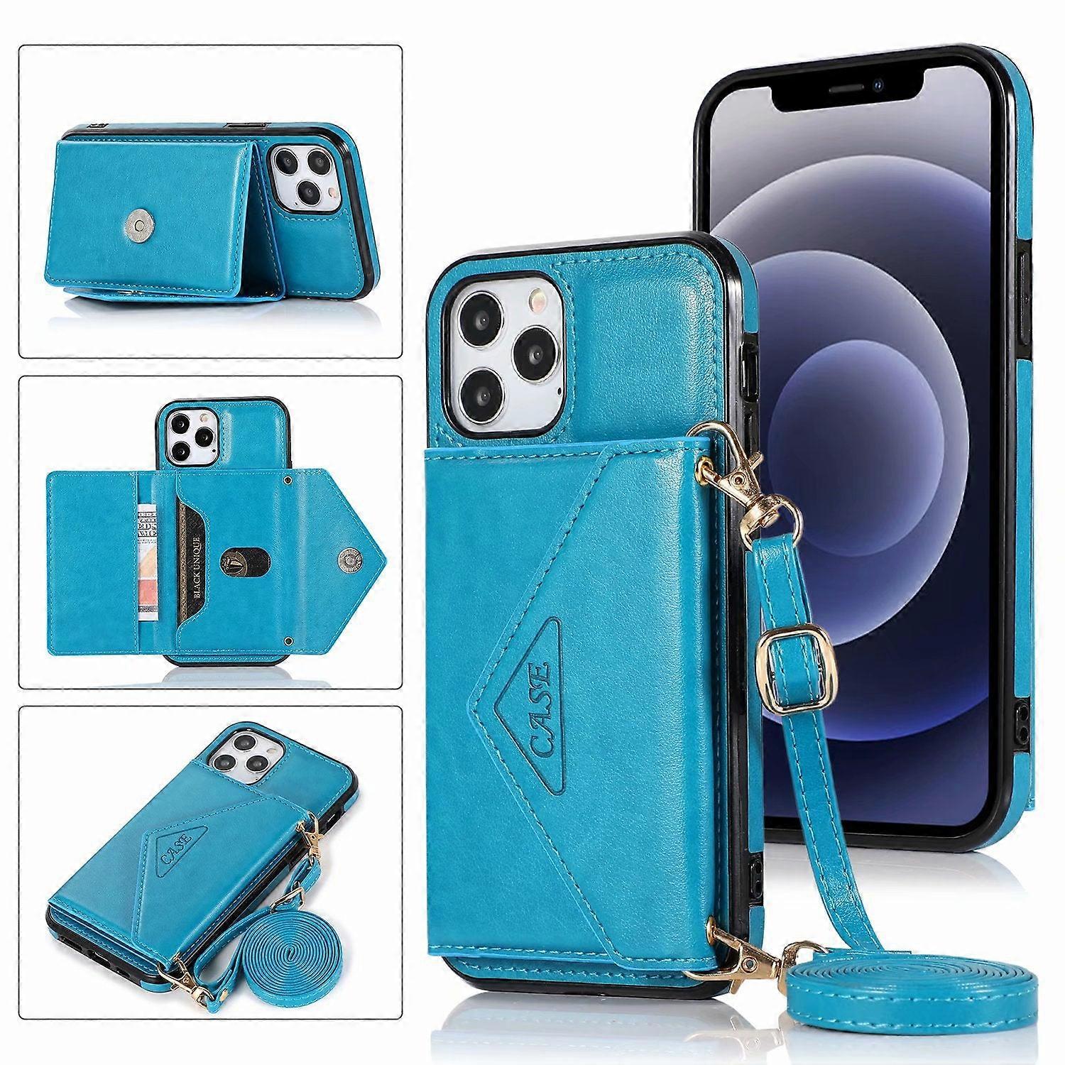 Case For Iphone 14 Pro Blue Triangle Crossbody Card Slot Lanyard Envelope Leather Wallet