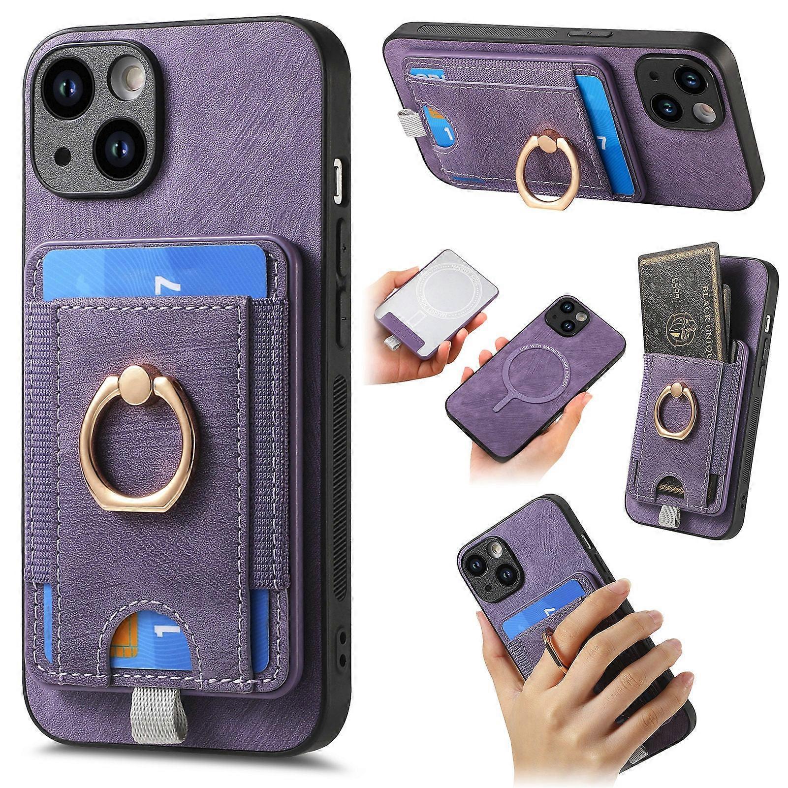 Case For Iphone 14 Pro Purple Magnetic Detachable Card Holder Finger Ring Buckle Protection