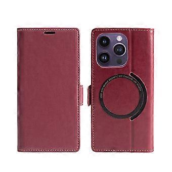 Case For Iphone 14 Pro Red Wireless Charging Mobile Phone Leather Card Slot Wallet