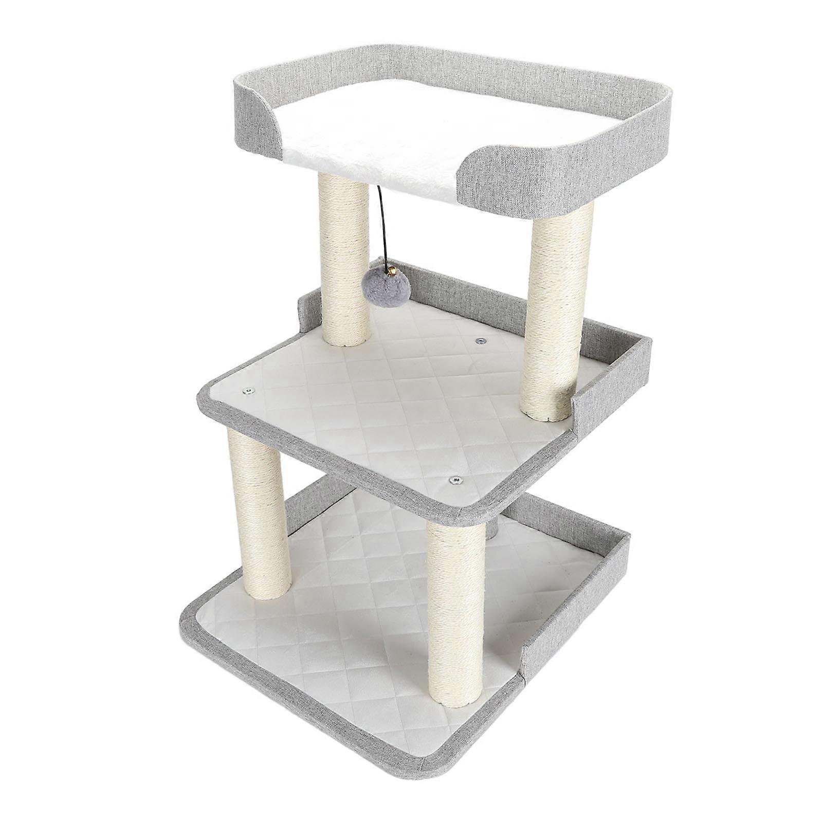 Cat Tree Tower 3 Layers Stable Scratch Resistant Multifunctional Cat Bed Climbing Frame for Autumn and Winter Item Type: Cat Tree Product Material: Polyester, Density Board, Sisal, Metal Product Specification: Three Layers Product Size: Approx. 49x45x70cm / 19.3x17.7x27.6in