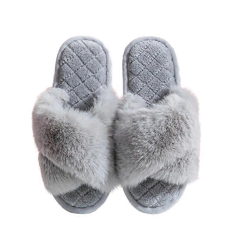 Cross-strap Fashion Plush Slippers Winter Home Indoor Fluffy Slippers Women