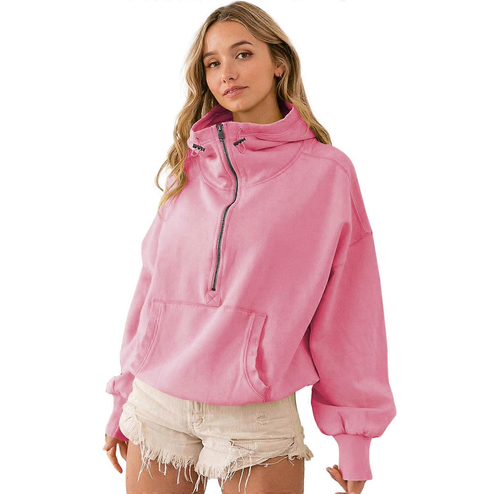Womens Casual Half Zipper Pullover Long Sleeve Sweatshirt Autumn Hoodie Pullover Teen Girls Fall Y2K Clothes Pink XL