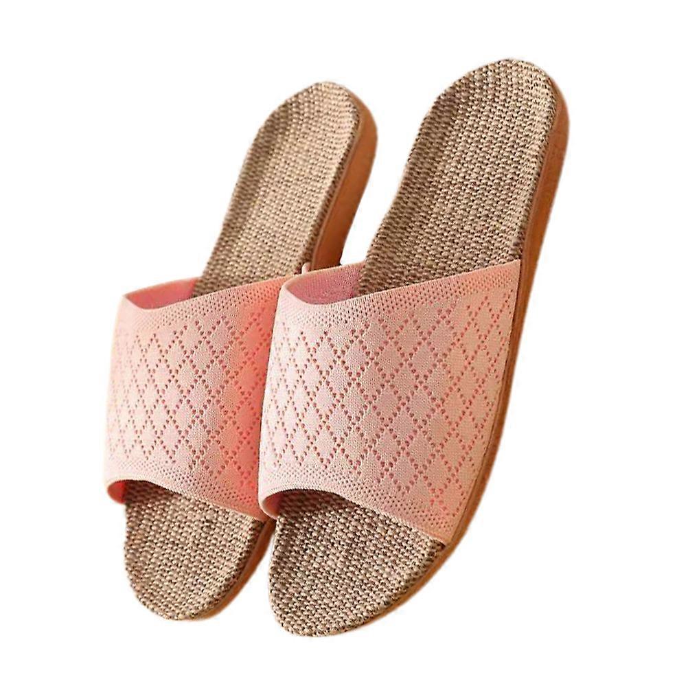Women's Bedroom Slippers Spring and Summer Indoor Anti-Skid Linen Slipper Pink 1Pair
