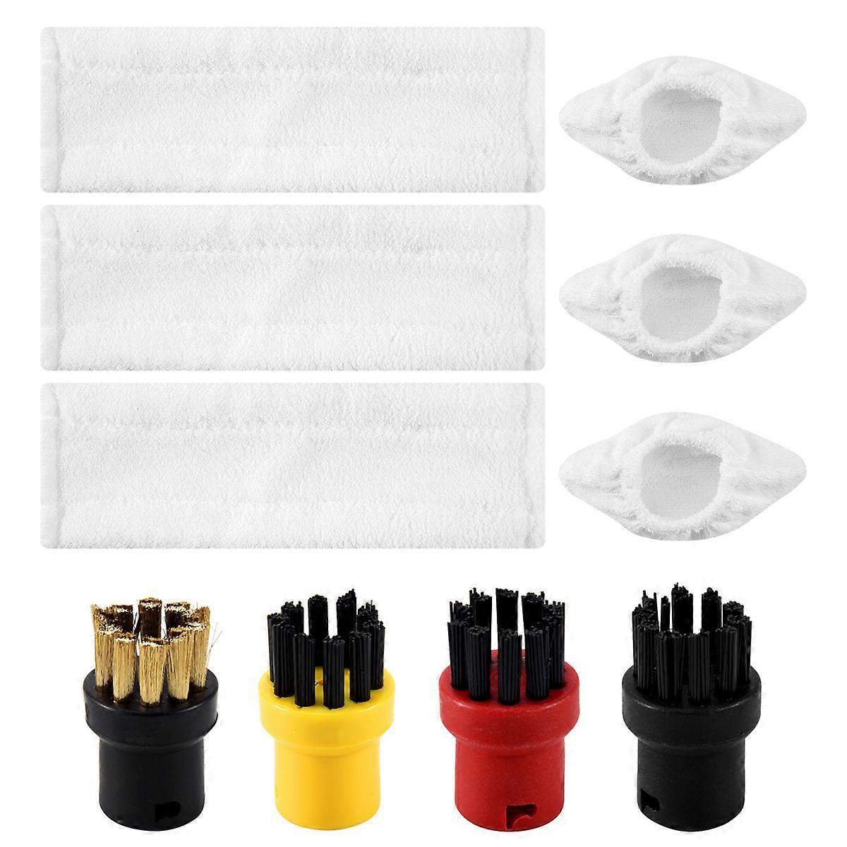 Made of high quality material, and practical to use. Round brush set with copper bristles for easy removal of stubborn dirt and incrustations. perfect for use on insensitive surfaces. Highly effective on a wide range of applications such as for the removal of stubborn and ingrained dirt on surfaces such as ovens, BBQ's, workshop areas, floor & wall tiles, metal work and much more. Solid and , long service life. Easy to install and reliable to use. Material:Plastic+cloth colour:As Shown Package Contents: 3 x mop cloths 3 x steam jackets covers 4 x small round brushes Only the above package content, other products are not included. Note: Light reflection and different displays may cause the color of the item in the picture a little different from the real thing. The measurement allowed error is +/- 1-3cm.