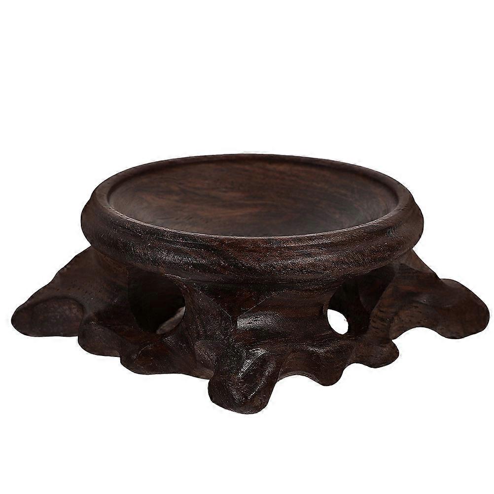 Decorative Wooden Sphere Stand for Display Brown Egg Carved Base