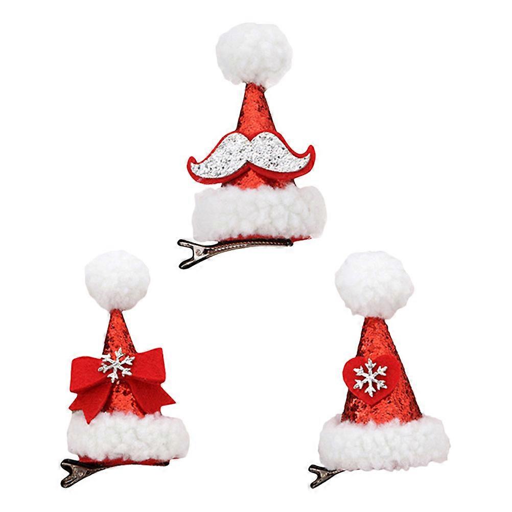 Decorative 3Pcs Christmas Hat Shape Hair Clips Headdress For Girls Red Color And Styling Function