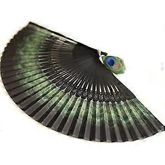 Damer high-end bambus folding hånd vifte, påfugl fjær mønster 1 stk