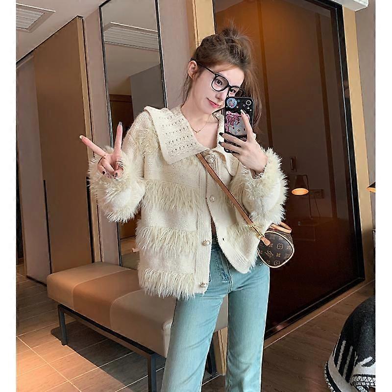 Design Tassel V-Neck Cardigan Sweater Coat For Women Spring And Autumn Small Soft Glutinous Lazy Knitted Top