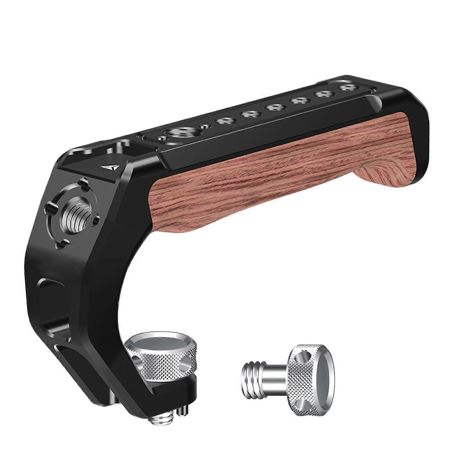 DSLR Wood Handle with 1/4 and 3/8 Threaded Holes Includes Cold Shoe Mounts Adapters for Camera Cage Rig Multicolor