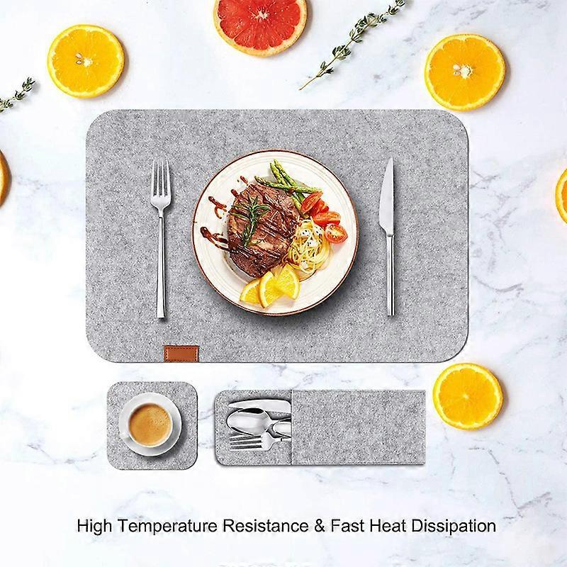 Dww-Dark Grey Set of 3 (Placemats + Coasters + Knife and Fork Bag) Felt Placemat Set with Coasters and Knife and Fork Bag Absorbent and Insulating Tab