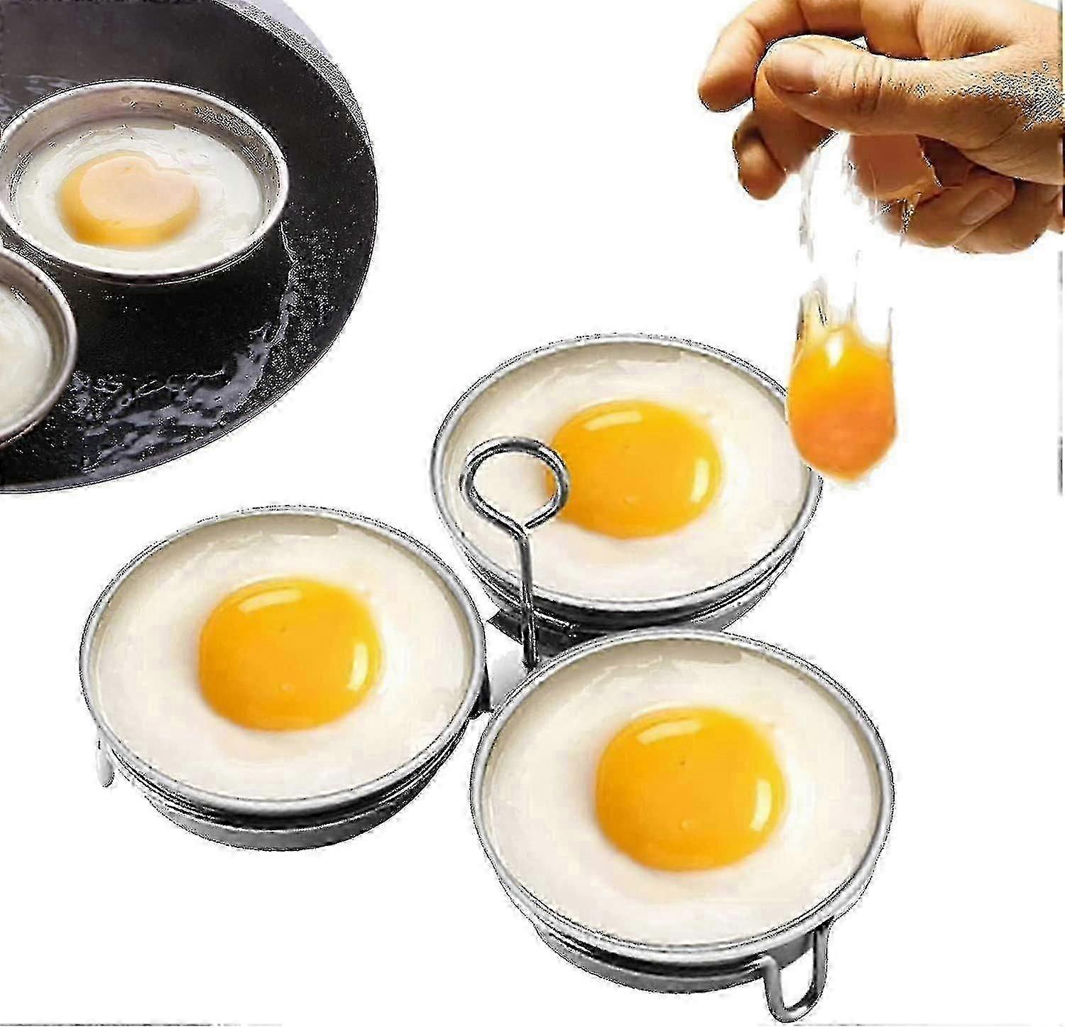 Stainless Steel Egg Poacher, Perfect Poached Egg Maker, Round Egg Cooker Rings For Breakfast Cooking Tool 3 Poached Egg Cups G