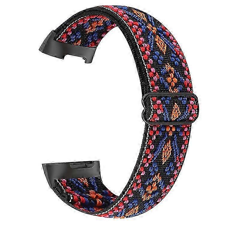 Elastic Nylon Smart Watch Band Adjustable Wrist Strap for Fitbit Charge 5 - Pink Orange
