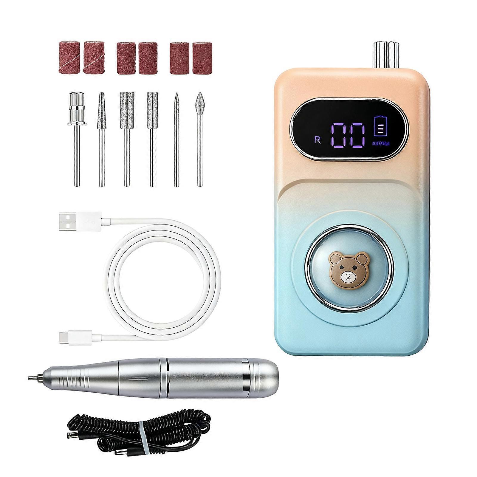 Electric Nail Buffer 45000RPM Variable Speed Rechargeable Manicure Device With Aluminum Alloy Construction Gradient Blue