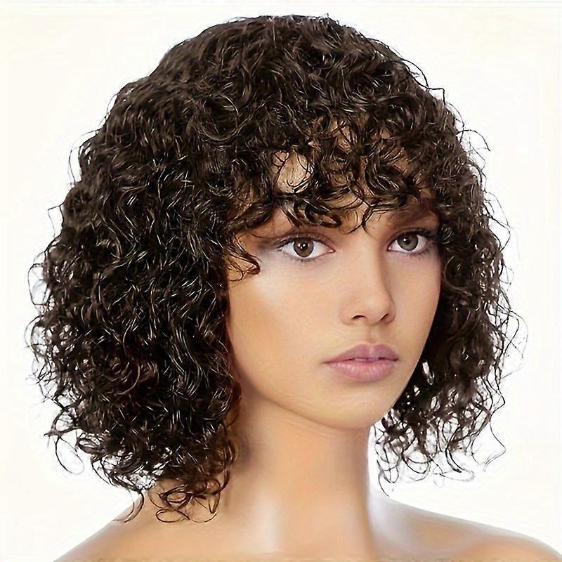 Elegant Jerry Curl 12" Shoulder Length Wig, High-Temp Fiber, Flat Bangs, Comfortable Rose Net Cap, Alluring Style - 100% Synthetic, compatible with
