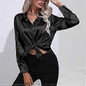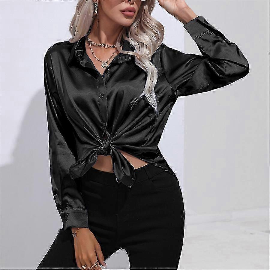 A women's plus size spring and autumn imitation silk long sleeve satin blouse shirt, a loose top