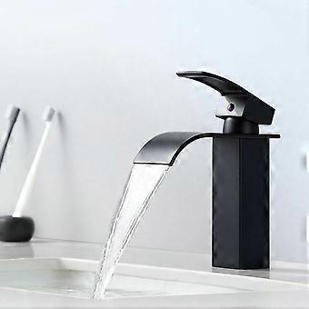 Single Lever Waterfall Basin Faucet Black Modern Single Lever Bathroom Faucet for Countertop Sink Faucets Suitable for Built-in Sink