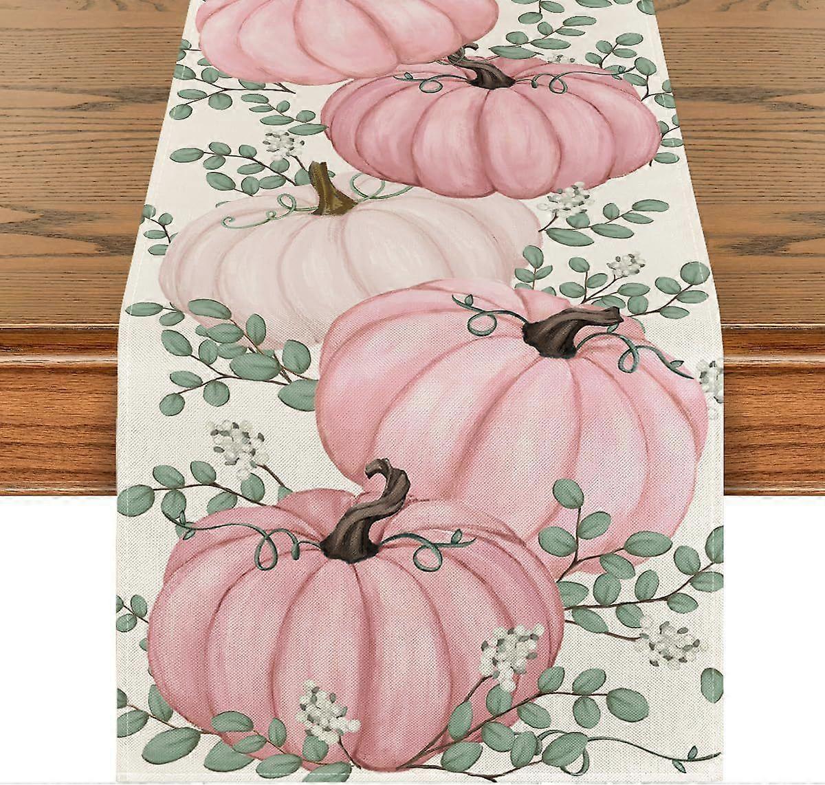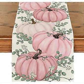 Fall Pumpkin Eucalyptus Leaf Polyester Table Runner