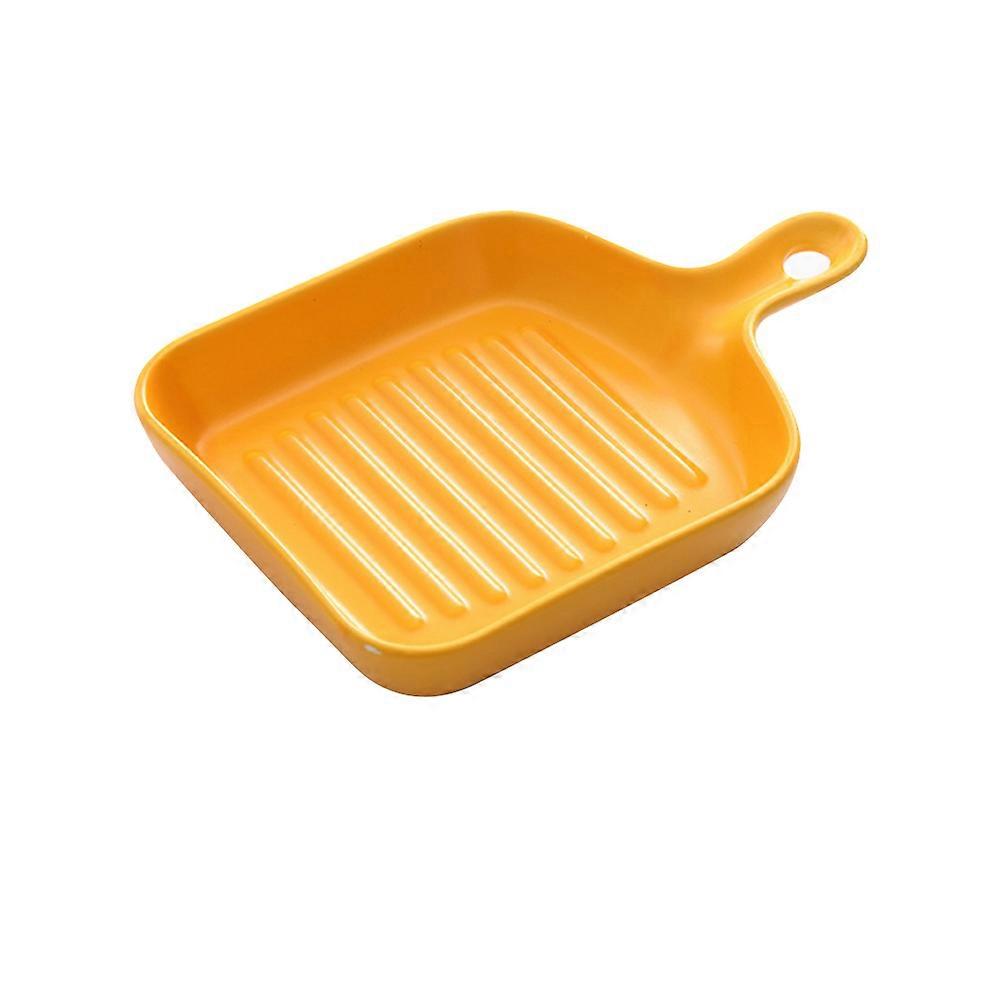 Square Grill Plate for Food Transfer 1 Piece Yellow Non Stick Pan with Handle