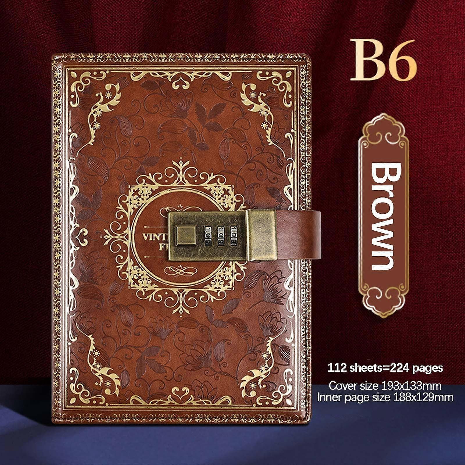 FloHua B6 Notebook Password-protected Lockable Diary, Vintage Retro Style Journal Notebook, Student Stationery (7.6inx5.2in)
