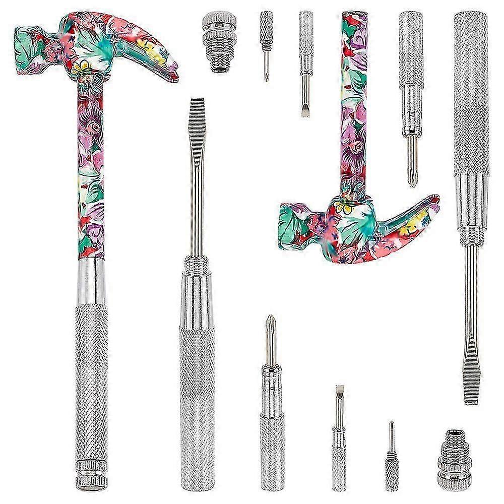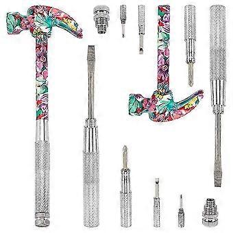 Flower Print Brass & Iron Hammer Set 6-in-1 Multi-Functional Screwdriver Platinum 20.6x7.1x2.3cms
