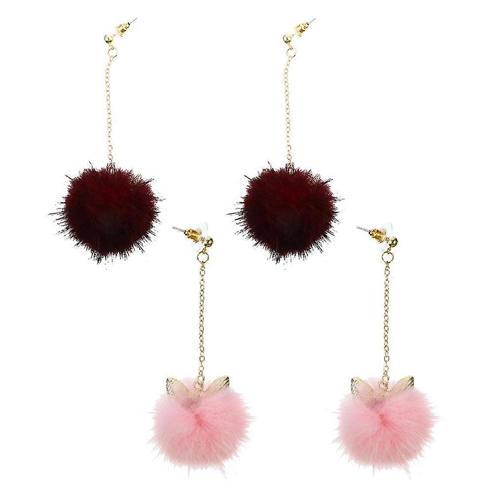 Fluffy Pompom Dangle Earrings For Women Featuring Adorable Cats Ears Design Ideal For Parties 2 Pairs