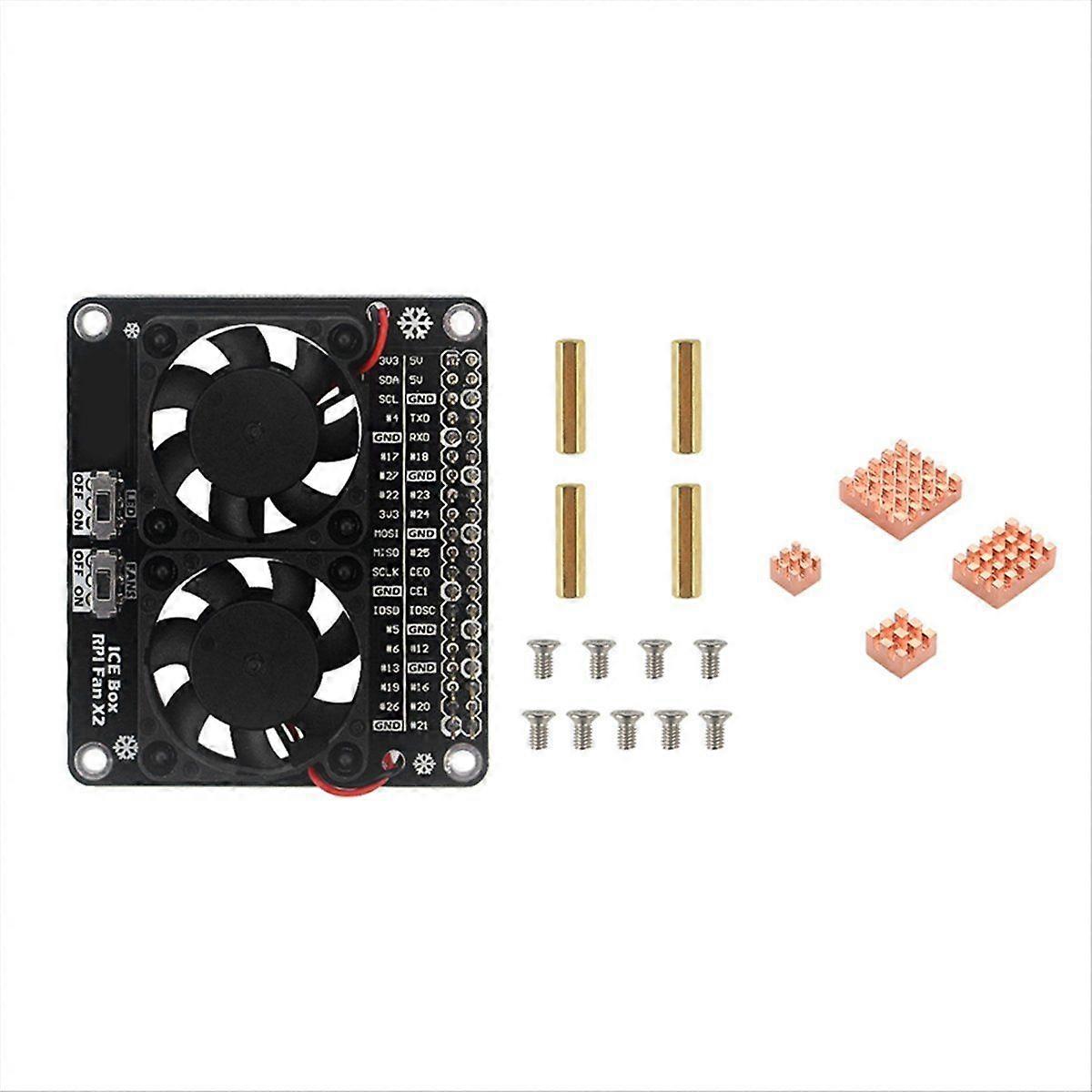 For Model B GPIO Extension Board Dual Cooling Fan, for 4B, 3B+