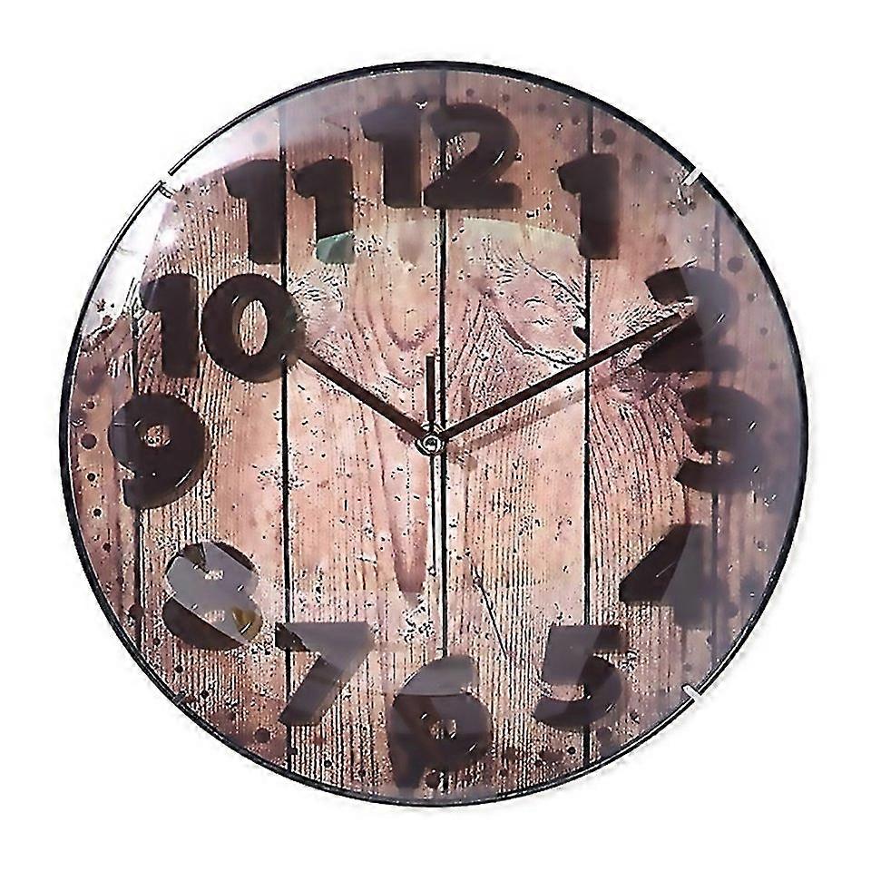 For Simple Retro Imitation Wood Grain Threedimensional Digital Round Wall Clock Retro Imitation Wood