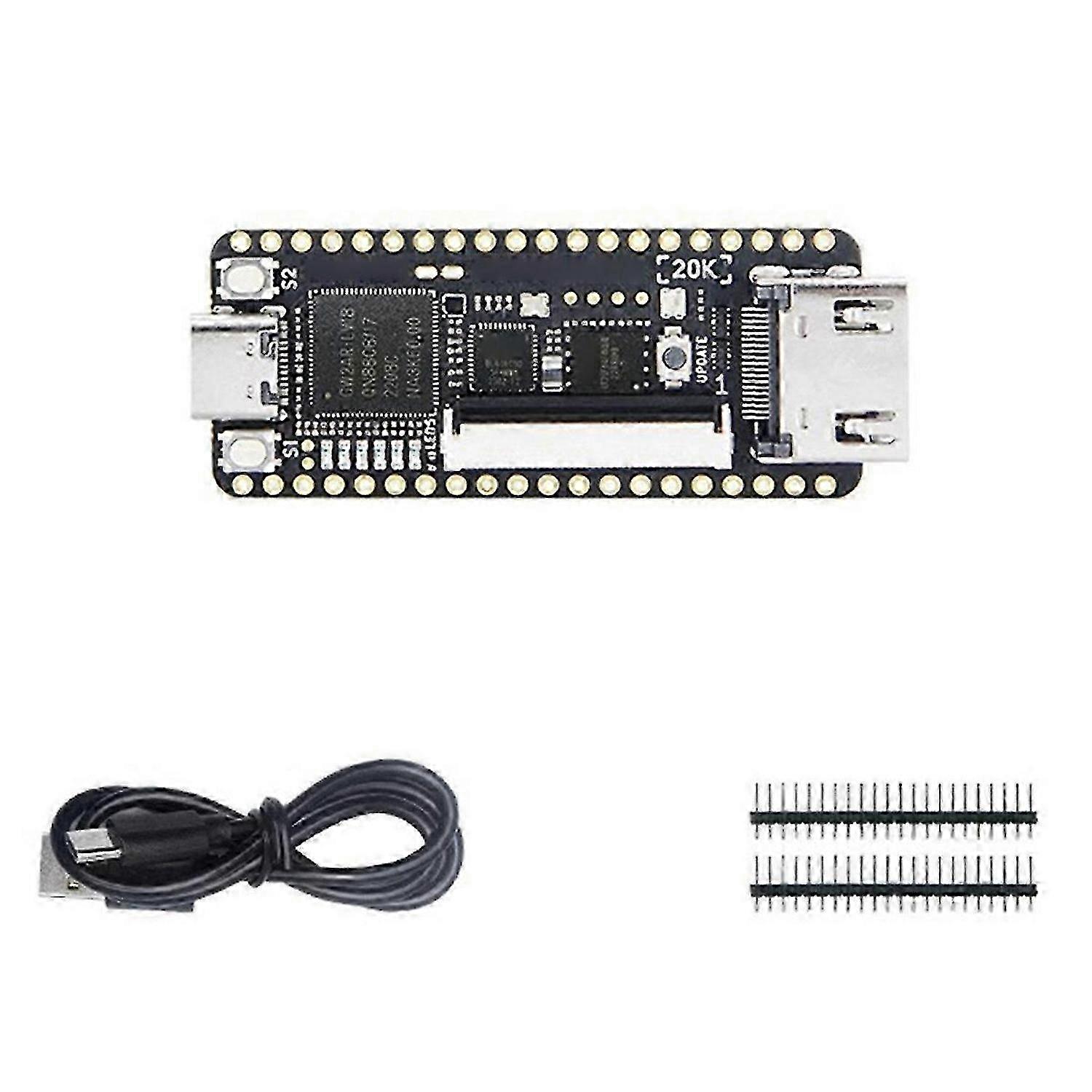 Description: Tang Nano20K is a development board in the for Tang Nano series, with the same number of logical units as Tang Primer20K, but with a volume compressed to the extreme of 5.5X2.3cm! It is equipped with low latency 64 Mbits SDRAM, making it easier to run emulators and better for running soft core Linux systems. The onboard download chip has been upgraded to the USB2.0 interface, which has the functions of high-speed TAG download, serial communication, high-speed SPI reception, and precise clock configuration Compared to the previous Nano series FPGA chips, it is a huge upgrade. Maker design? Reto game console? DY development? Learning Verilog? RISC-V Soft Core? It can satisfy you. Note: Due to different batches, there may be differences in product appearance and printed text, which does not affect use. Material: ABS colour: As Shown Package Contents: 1 x Development board (without soldering pins) 1 x Data cable 2 x Pins Only the above package content, other products are not included. Note: Light reflection and different displays may cause the color of the item in the picture a little different from the real thing. The measurement allowed error is +/- 1-3cm.