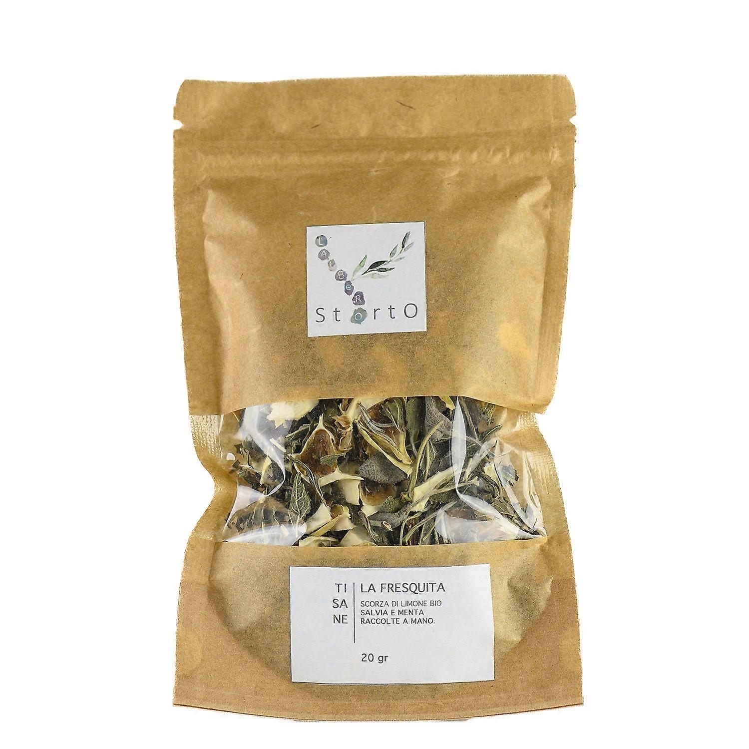 Infuso Vegetale � Salvia & Scorza di LimoneMiscela naturale a base di scorza di limone, menta e salvia, ideale per favorire una buona digestione.Ingredienti: Scorza di limone (50%) Foglie di menta spicata (30%) Salvia officinalis (20%)Valori nutrizionali medi (per 20 g di miscela): Zuccheri totali: 0,624 g Proteine: 0,156 g Grassi: 0,184 g Valore energetico: 8,2 Kcal / 34,3 KJModalit� d�uso:Aggiungere un cucchiaino della miscela in un filtro per infusi. Immergere in mezzo litro di acqua bollente e lasciare in infusione per 5�7 minuti. Ottimo anche freddo. Eventuali variazioni di gusto e colore sono indice della naturalit� del prodotto.Materie Prime Naturali:Prodotto con ingredienti 100% naturali, coltivati a km 0 in modo sostenibile nei nostri campi di Apricale.Lavorazione Artigianale:Produzione, confezionamento ed etichettatura eseguiti a mano secondo i principi dell�Agricosmesi.