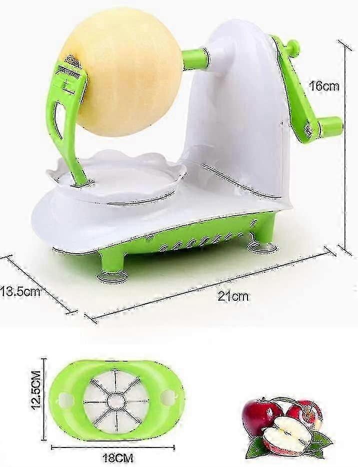Made of ABS material, environmentally friendly and non-polluting, the blade is made of stainless steel, sharp and strong, can help you quickly peel off the apple peel. Easy to use, fix the apple on the blade, turn the handle clockwise, the stainless steel blade will automatically peel off the apple peel, and the apple can be cut in 5 seconds. The peeling speed is fast and the peel is not easy to break. The base suction cup design can hold the tableboard more firmly, it is not easy to shake, the blade can be disassembled, easy to clean, hand-cranked peeler, peeling easier.The blade has a lid, which can be kept clean and sanitary, and it can also prevent touching injuries. Stainless steel blades can cut thin skins and do not waste pulp. Equipped with an apple slicer, it can help you quickly cut the apple into 8 pieces, which can save you time. It is very suitable for preparing healthy apple snacks and pies for children or parties.Save time and save effortless gadgets that will become your good companion in the kitchen.