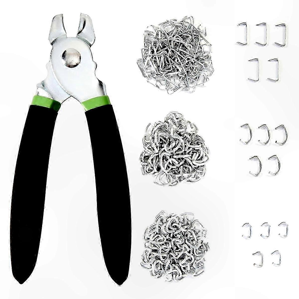 Galvanized Steel Hog Ring Pliers Kit with 270 Rings, Multiple Sizes for Crafting and Bagging Use
