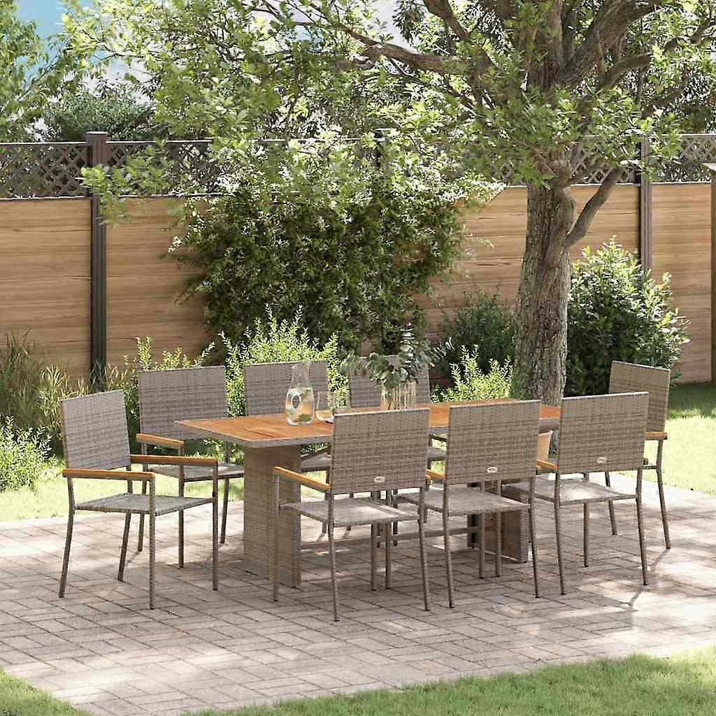 Garten Essgruppe 9 pcs Grau Poly-Rattan