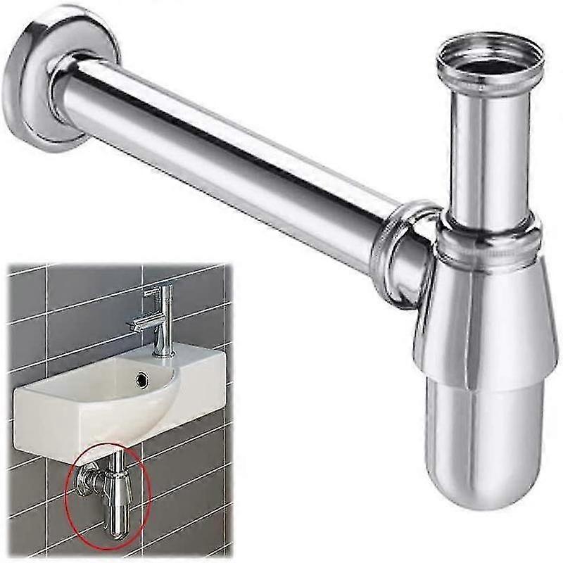 Cloakroom Wash Basin Chrome Brass Deodorant Bottle Trap Bathroom Wash Sink Tap Waste Pipe Round Adjustable Outlet Modern Design Drain (1 1/4)