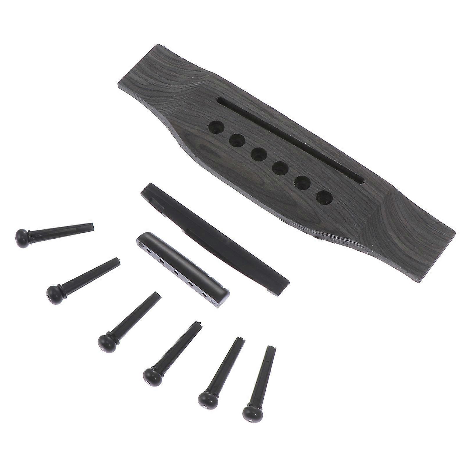 This guitar bridge saddle nut set is made of , which can withstand use. Features the wood and plastic material, which has high durability, not easy to deform. Fine workmanship, ensures practicality. Features -Material: Wood, plastic. - Made of material, durable for lasting use. - This set includes guitar bridge, guitar saddle, guitar nut and bridge pins. - Fine craftsmanship, this set is designed for long time use. - Replace old or broken guitar part with a new one, very practical. - Its density and minimal porosity can yield good clarity and intonation. Package list: 2 x Guitar Bridge 4 x Saddle and Nut Kit 12 x Bridge