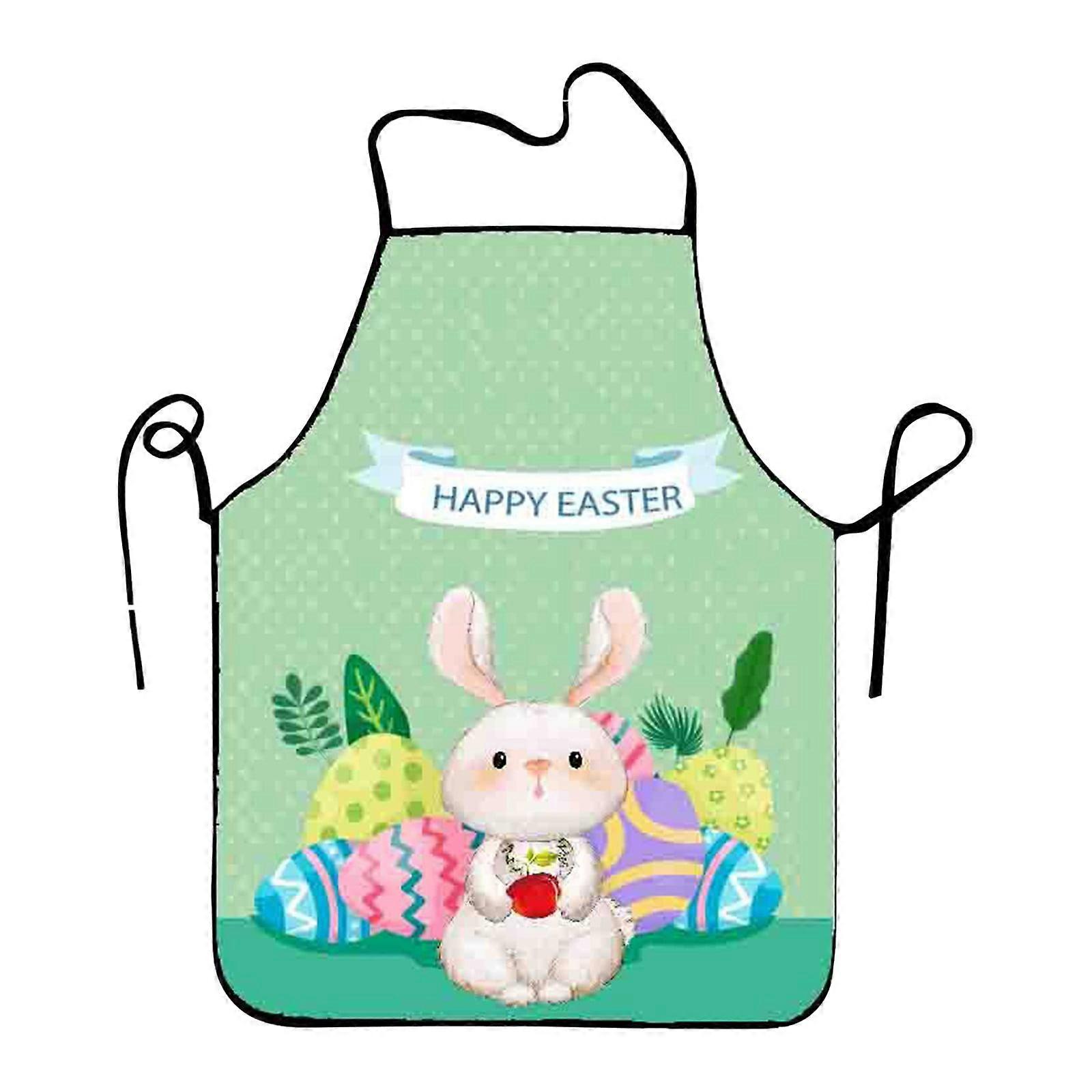Giyblacko Aprons and oversleeve Easter Cartoon Rabbit Eggs Easter Polyester Fine Grain Sleeveless Apron Home Smock Multi Function Apron
