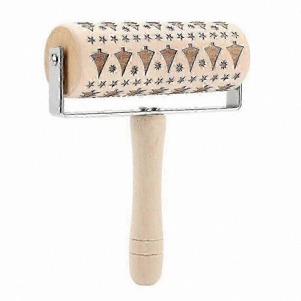 Engraved Wooden Rolling Pin for Baking and Pastry, Christmas Design Dough Roller ToolChristmas Tree