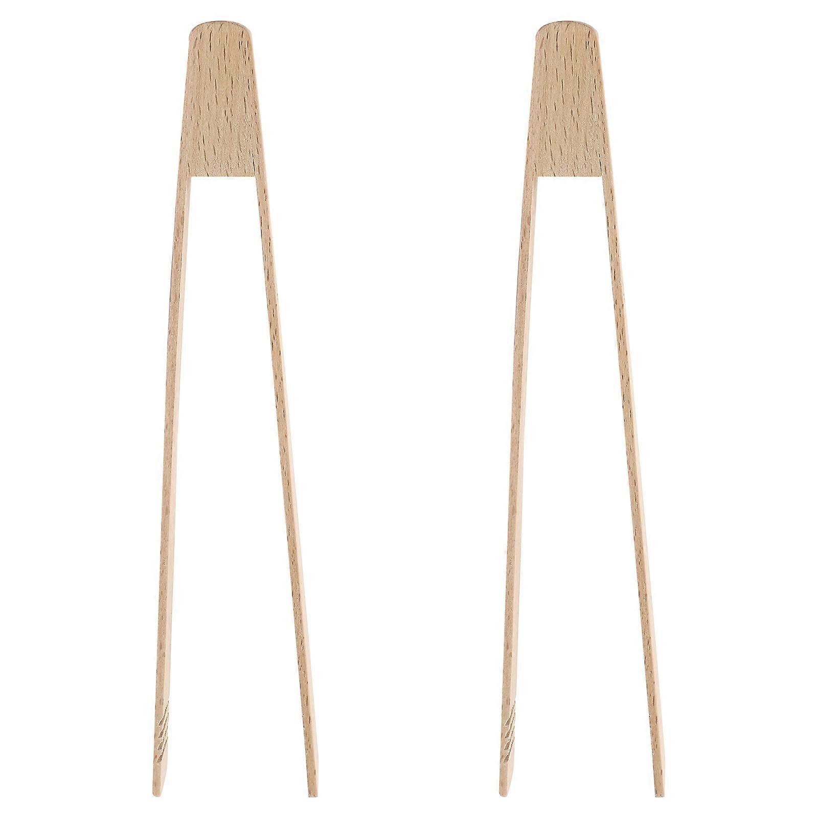 Wood Barbecue Tongs with Synthetic Material for Food Light Yellow Practical for Home Party and Outdoor Picnic 2 Pcs