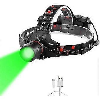 grønn lys hode lommelykt for nattsyn, ultra lyse grønne hodelykt usb oppladbart ledet jakt frontlykt