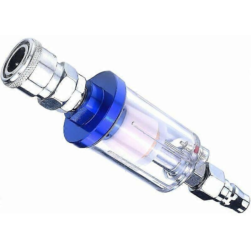 Used to connect to the inlet of pneumatic tools to filter impurities and moisture from the air. Suitable for paint sprayers and air compressors. With high efficiency, it is the ideal product for filtering impurities and moisture. Keeping your air tools performing at their best. Can be directly connected to the gun to filter dust and oil from the air. Description: - Used to connect to the inlet of pneumatic tools to filter impurities and moisture from the air. - Suitable for paint sprayers and air compressors. - Highly efficient, it is the ideal product for filtering impurities and moisture. - Keeping your air tools performing at their best. - Can be directly connected to the gun to filter dust and oil from the air. English:Specification: - Material: Aluminum Alloy - Color: Blue + Silver - Size: Approx.150x 45mm/5.91x 1.77inch - Thread Diameter: (The inner and outer thread) 1/4 inch - Working Pressure: 1-9kg/cm2 - Maximum Pressure: 9.9kg/cm2 Package Includes: 1 Piece Oil-Water Separator Filter Note: Due to the light and screen setting difference, the item's color may be slightly different from the pictures. Please allow slight dimension difference due to different manual measurement.