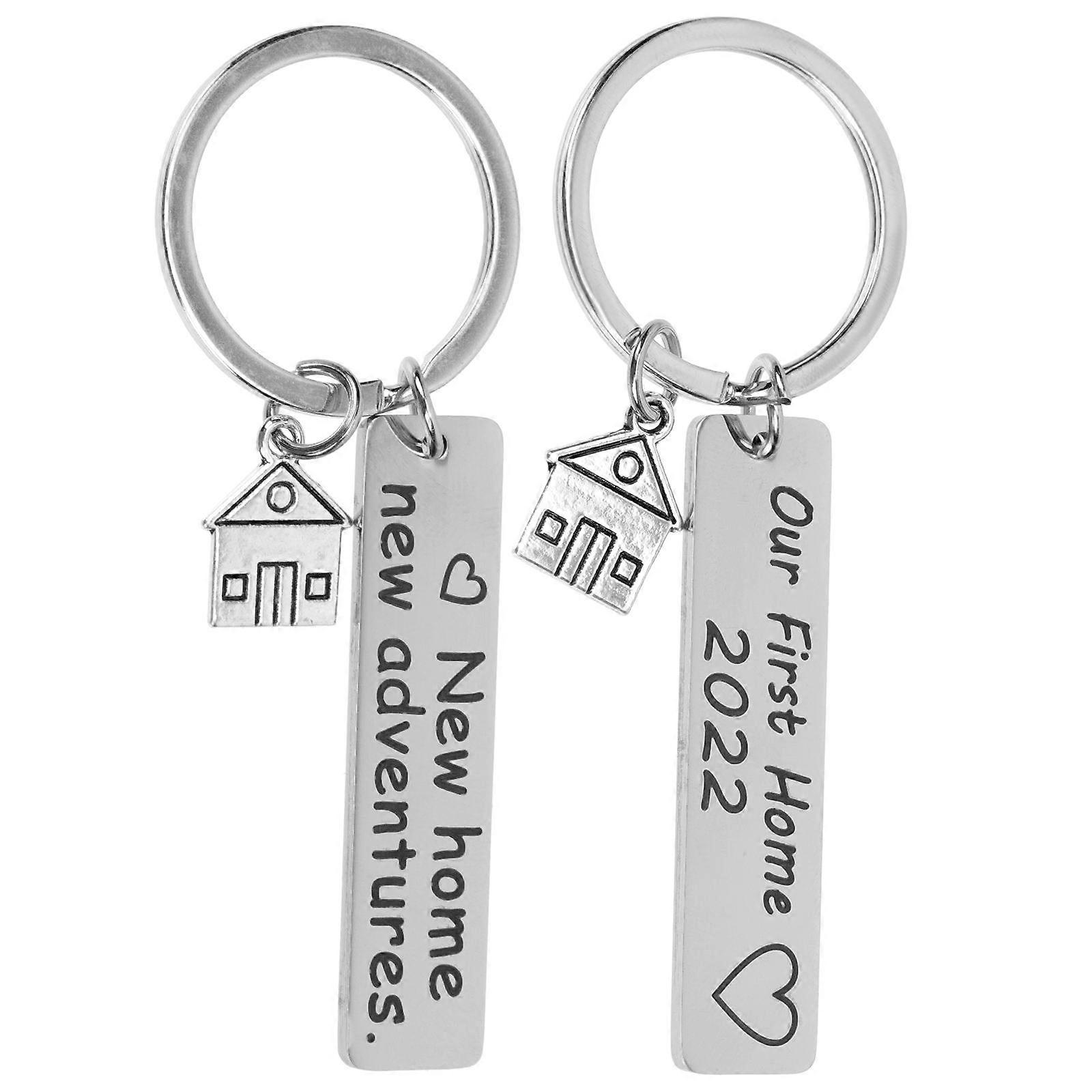 Home Keychain for 2Pcs Housewarming Theme Stainless Steel Gift Rings