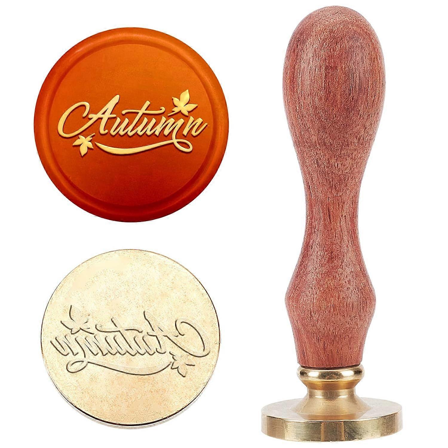 Autumn Wax Seal Stamp Maple Leaves Word Sealing Wax Stamps 25mm Removable Brass Head Sealing Stamp Decorating on Autumn Wedding Invitations Thanksgivi