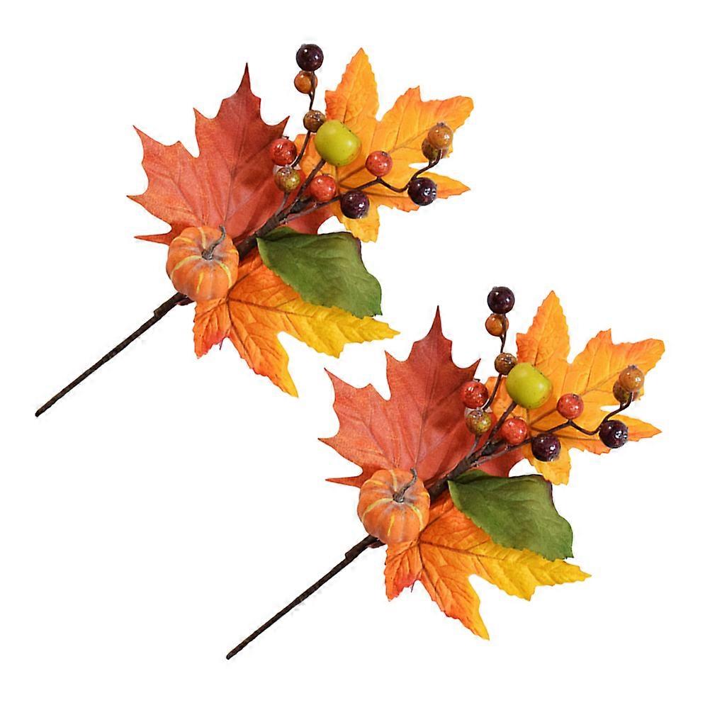Fall Decor Indoor 2Pcs Artificial Fall Leaf Simulated Berry Pumpkin Maple Leaf Branch For Thanksgiving Harvest Festival Home Garden Display 22X22Cm
