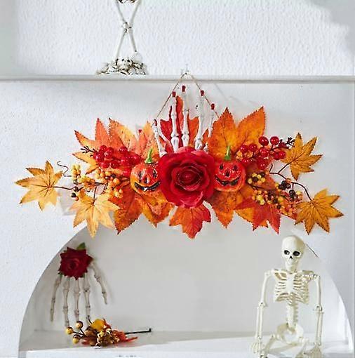 Fall Wreath: Halloween Decoration Autumn Harvest Wreath with Pumpkins and Maple Leaves Easy to Install Fall Door Garland for Front Door Wall and Mante