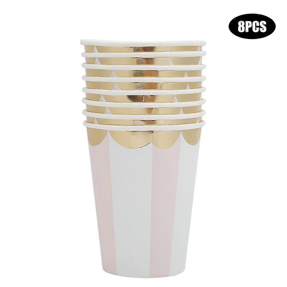 Household Gold Stamping Disposable Paper Dish And Cup Set Party Tableware Supplies8Pcs Double Layer Paper Cup Gold Stamping Pink Stripe