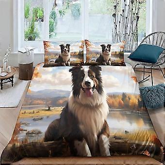 Hypoallergenisk mykt mikrofiber dynetrekksett med Border Collie-design - 3-delt sengesett med matchende pute