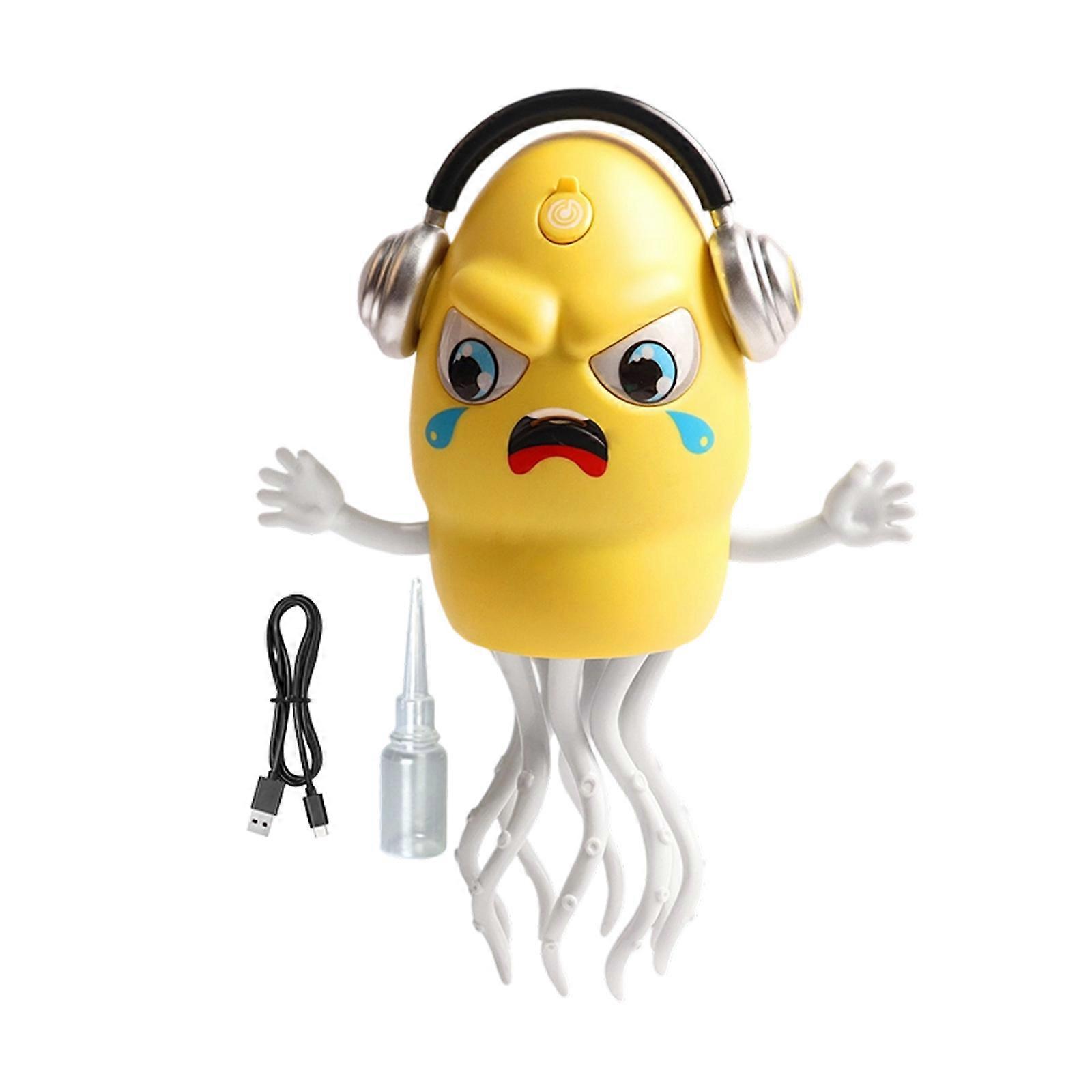 Interactive Sprays Cuttlefish Dancing Animal Toy with Intelligent Motion Control and Music Effect Obstacle Avoidance Toy Yellow