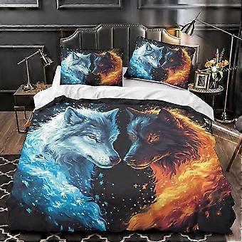 J3092 Sengetøy 3D sengetøy sett, ulv dynetrekk 3-delt sett dynetrekk for barn gutter tenåringer menn mykt lett dynetrekk soverom sovesal dekor be
