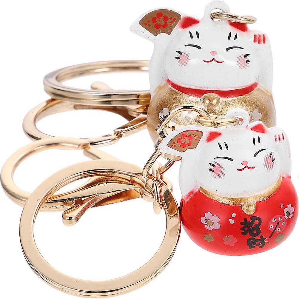 Japanese Fortune Cat Keychain Pendants for Decoration 4Pcs Assorted Color