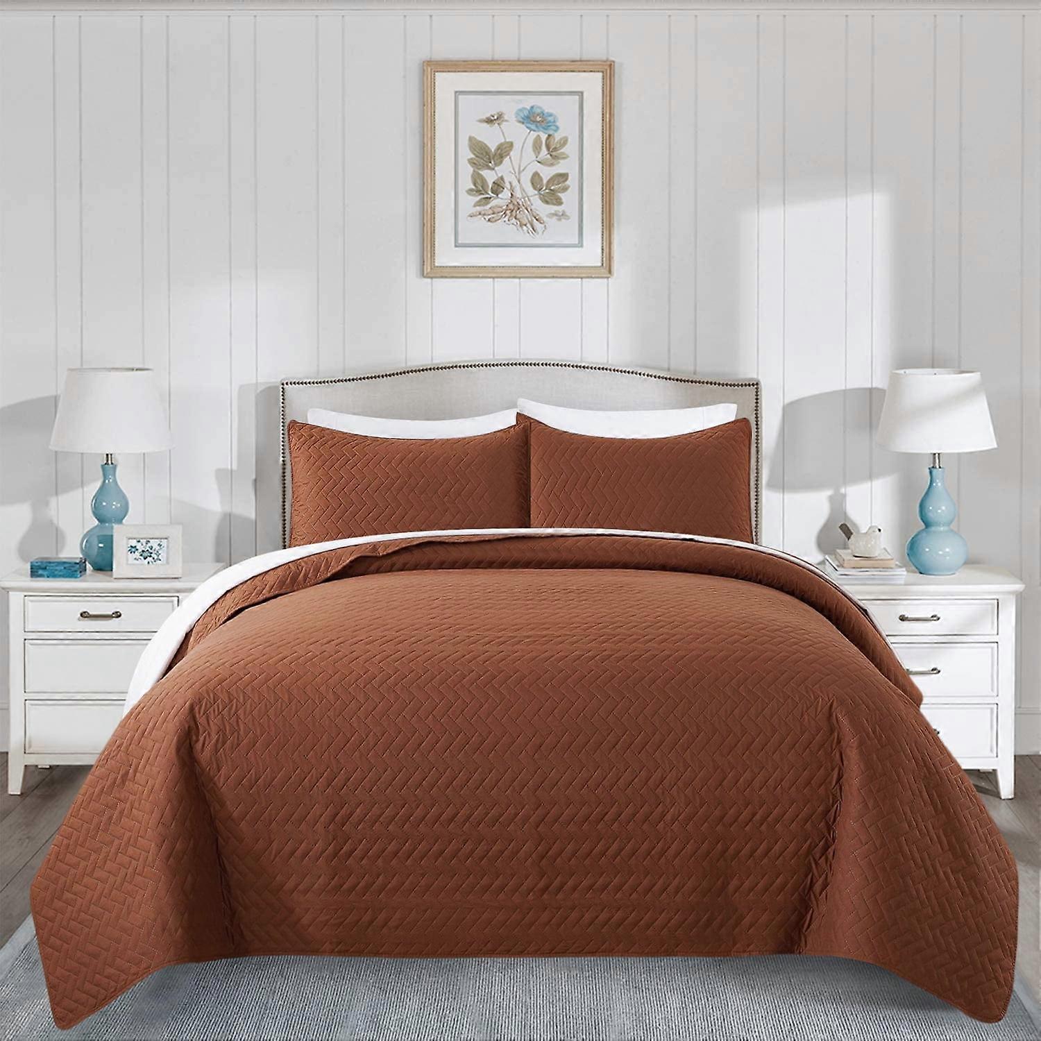 JML Coffee Weave Pattern Microfiber Quilt, Queen - Breathable (2 Count)
