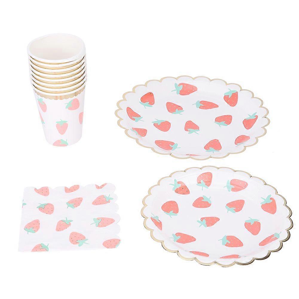 Strawberry Pattern Disposable Paper Plate Cup Tissue Birthday Wedding Party Supplies Dish Tableware